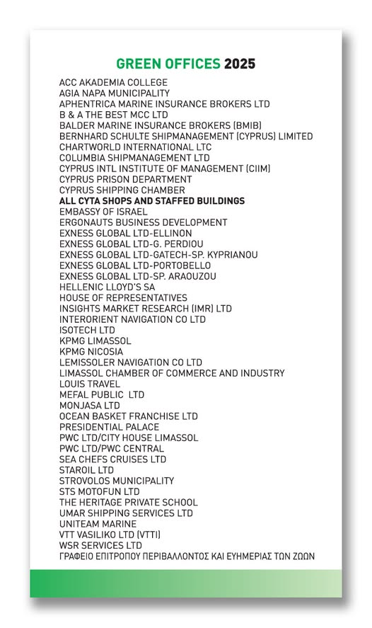 Συγχαρητήρια στις επιχειρήσεις που πιστοποιήθηκαν με Green Offices και ιδιαίτερα στη Cyta που πιστοποίησε όλα τα στελεχωμένα της κτίρια!
