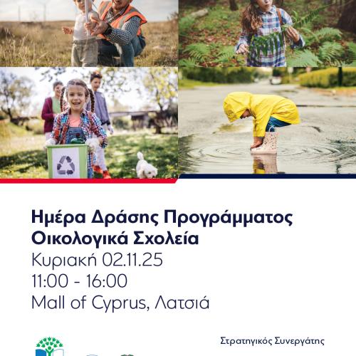 The CYMEPA, National Coordinator of the international Eco-Schools Programme in Cyprus, is organising the annual Eco-Schools Action and Information Day on Sunday, 2 November 2025, from 11:00 to 16:00, at the Mall of Cyprus in Latsia.